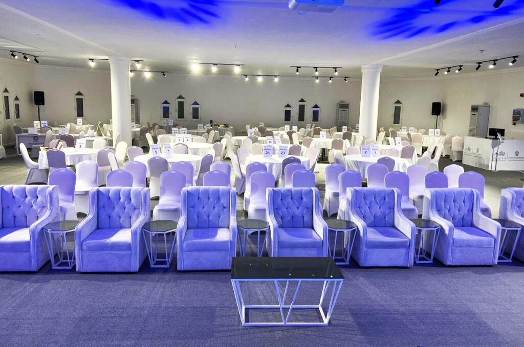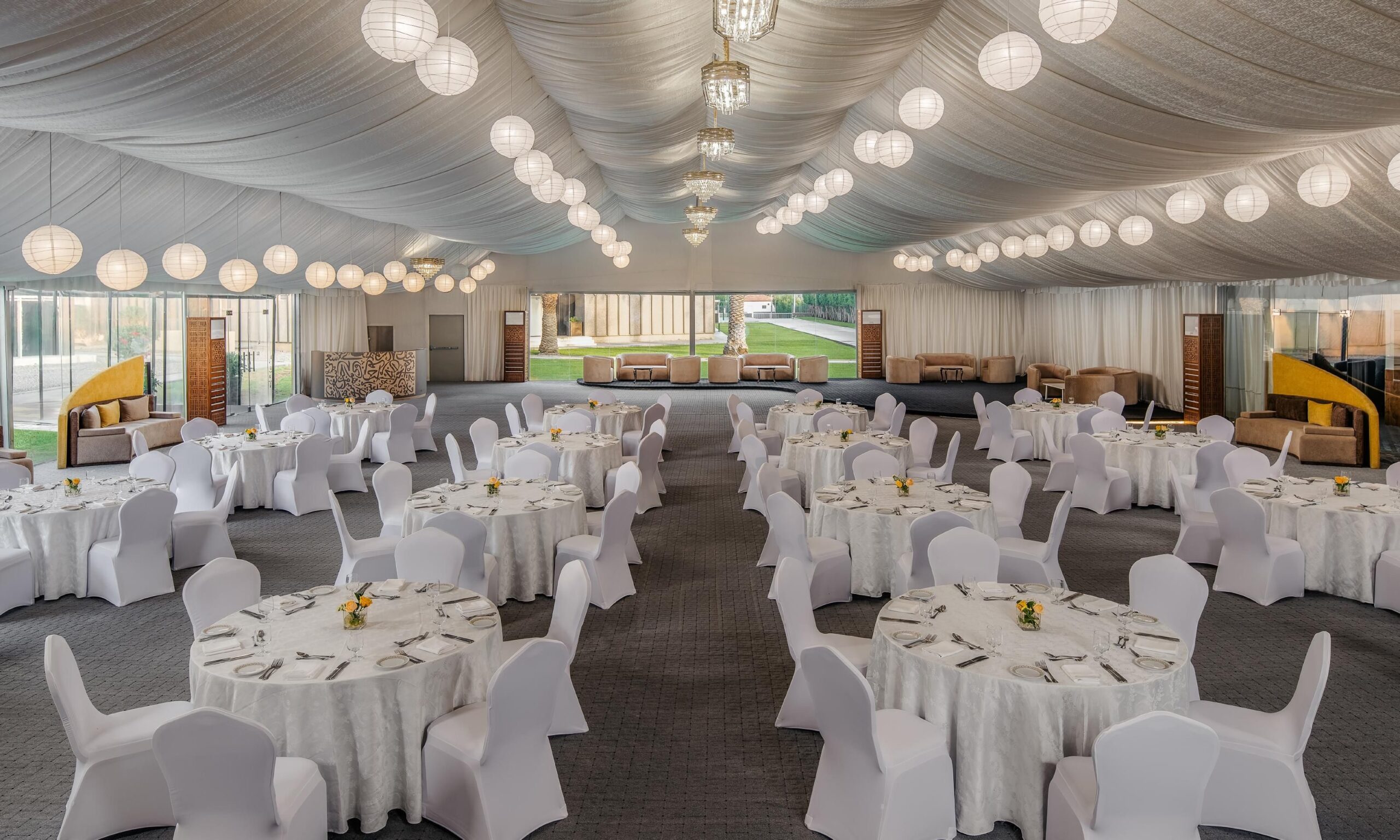 يعتمد اختيار مكيف الهواء المناسب على مساحة قاعة مناسبتك وعدد الضيوف. يستطيع فريقنا مساعدتك في تقييم احتياجاتك واقتراح أفضل وحدات تكييف الهواء المحمولة أو المنفصلة لراحة مثالية.